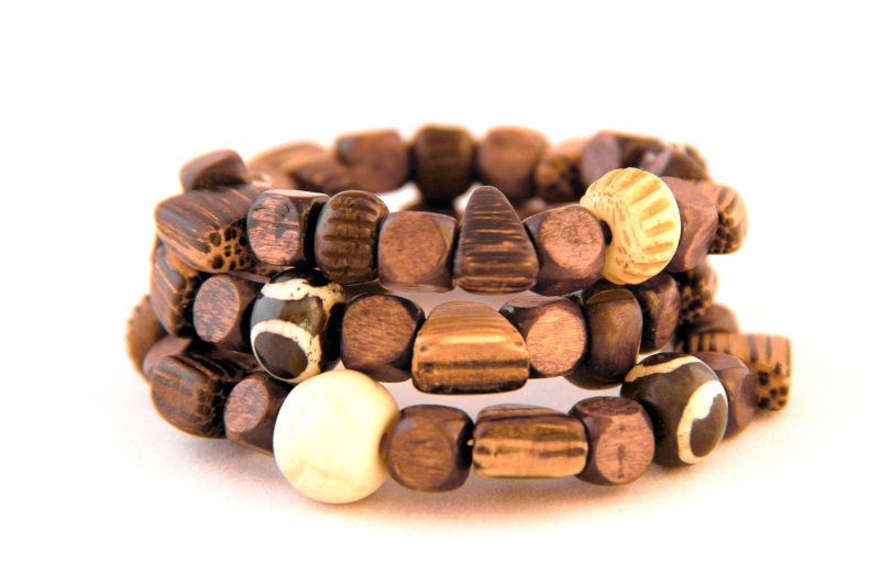 Organic feel memory wire or cuff bracelet. Handcrafted with wood beads in multiple shapes and colors.